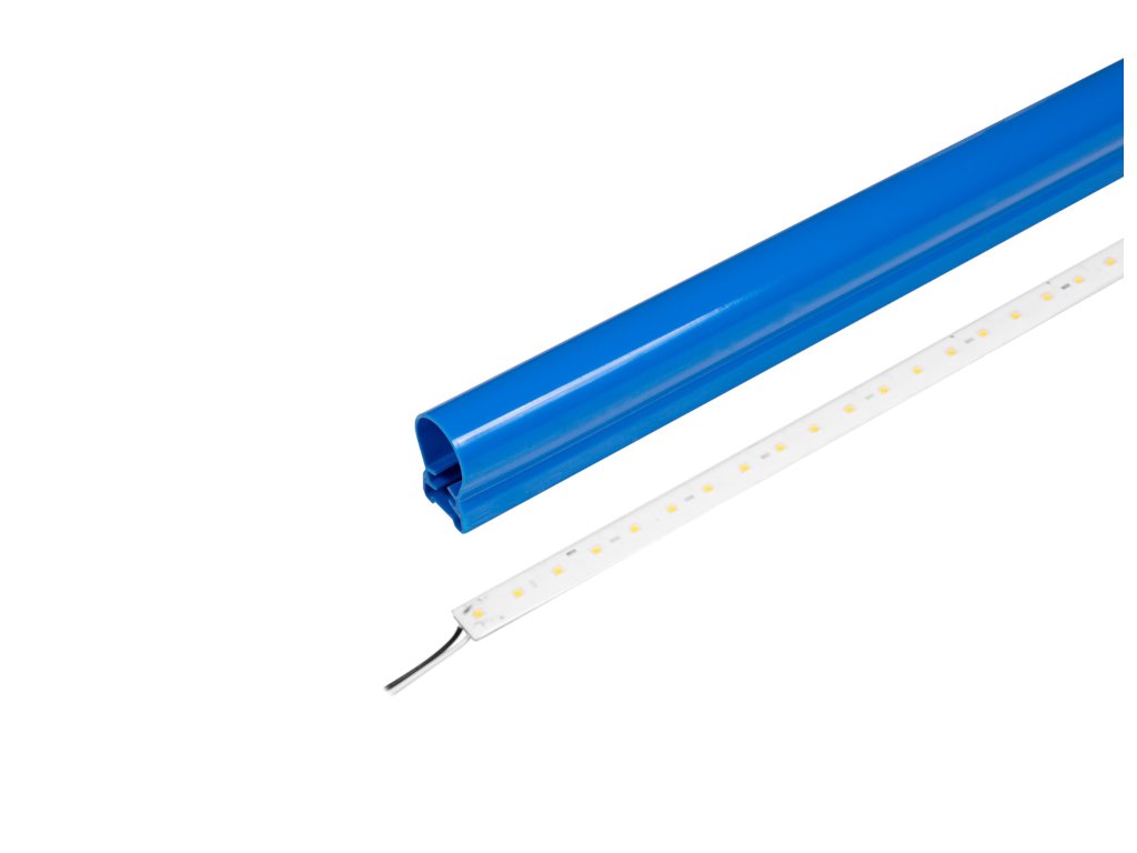 Kontur- und Rand-LED-System zur Beleuchtung von tankstellen und architektonischen räumen. Die Basis bildet ein Polycarbonatrohr (Durchmesser 25 mm) in der Farbe Blau RAL 5015 und ein eingebauter LED-Streifen. Diese Lichtlinien haben eine Leistung von 7 W/m, während der Marktstandard zwischen 3,2–4,0 W/m liegt. Aus diesem Grund sind die Lichtlinien BORDER LED lights viel heller als andere Lichtlinien derselben Kategorie.