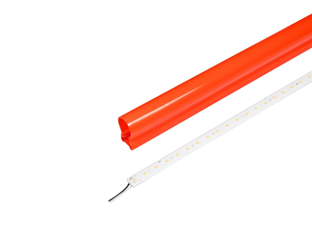 Kontur- und Rand-LED-System zur Beleuchtung von tankstellen und architektonischen räumen. Die Basis bildet ein Polycarbonatrohr (Durchmesser 25 mm) in der Farbe Rot RAL 3020 und ein eingebauter LED-Streifen. Diese Lichtlinien haben eine Leistung von 7 W/m, während der Marktstandard zwischen 3,2–4,0 W/m liegt. Aus diesem Grund sind die Lichtlinien BORDER LED lights viel heller als andere Lichtlinien derselben Kategorie.
