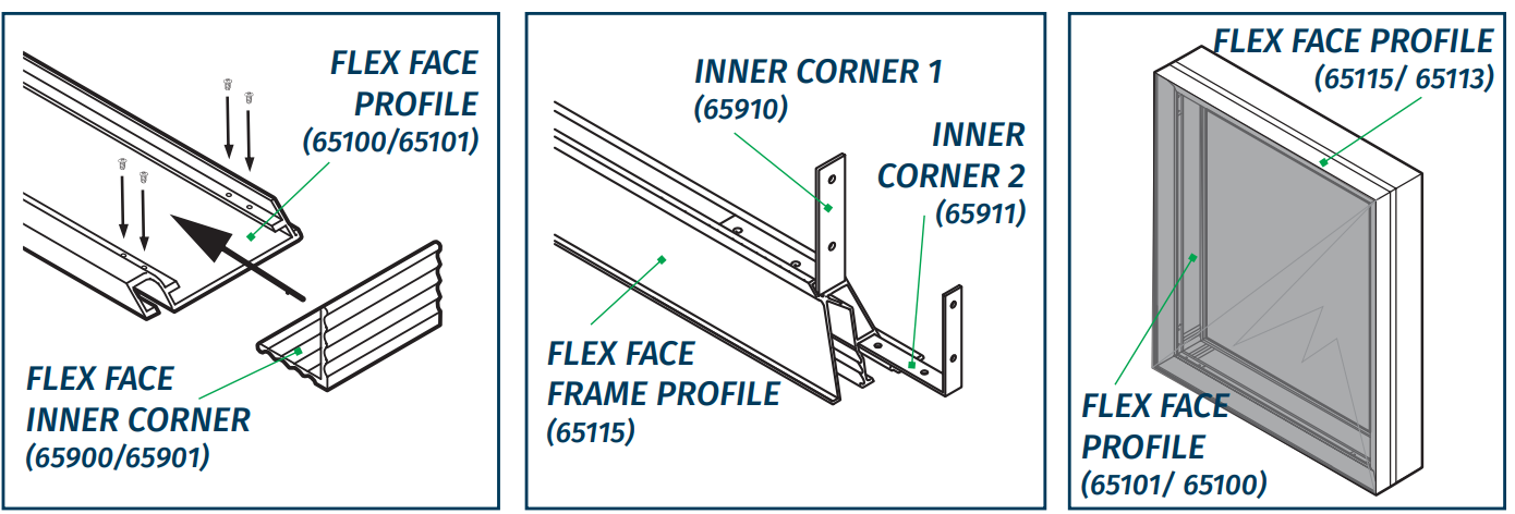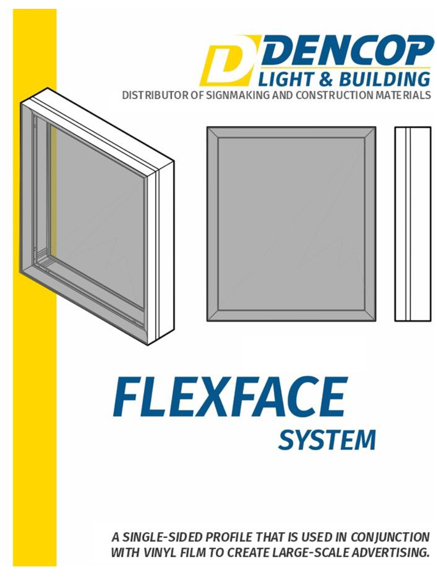 In our offer you can find Aluminium profiles of 6 m length, from which you can assemble large-area advertisement banners. Flex Face is a one-sided profile that is used in conjunction with vinyl foil to create large-area advertising with tension levers.