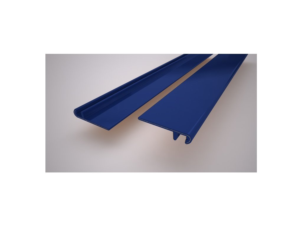 Original blue Elkamet F profile for trimming 3 mm plexiglass lettering advertising signs. CAB (cellulose acetyl butylate) with extreme weather resistance is used as a profile material. A metal foil is embedded in the profile to protect the profile against shrinkage, the plastic sheath is transparent or dyed and has a glossy surface.