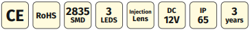 LED Module DX3-3 128lm/W 12V DC 0,72W 7000K 92lm