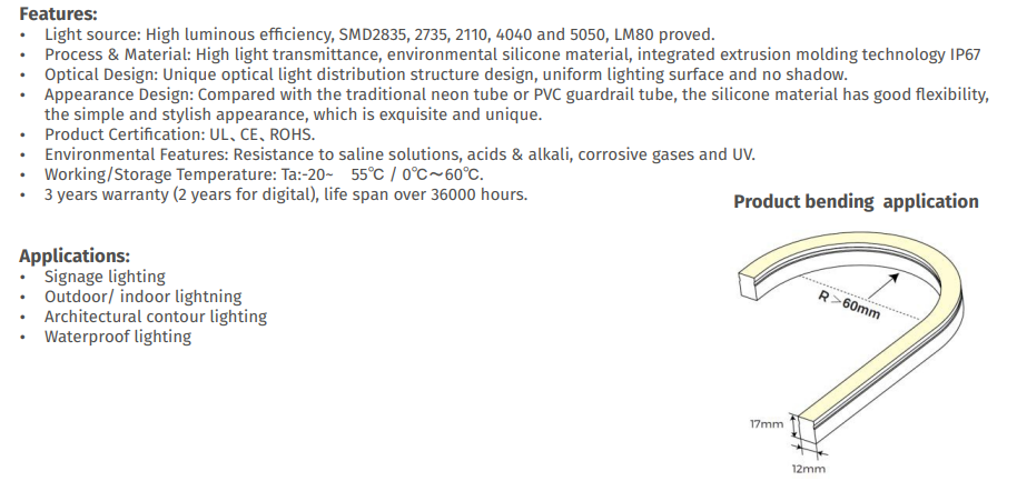 FLEX LED NEONS are easy to shape, unbreakable and waterproof. It is available in a wide range of colors. Thanks to their high uniform luminosity, perfect workmanship and easy installation, they are suitable for a very wide range of uses, especially in the field of illuminated advertising and decoration.