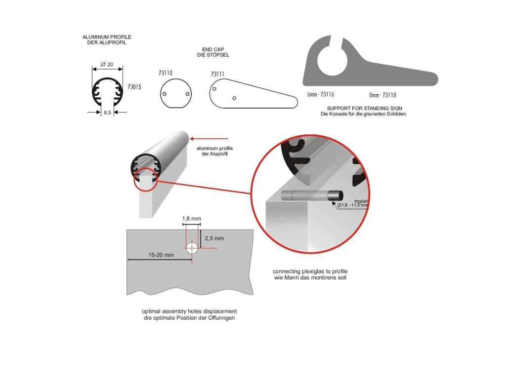 S profilem lze vytvářet i malé designové logo na stůl s pomocí stojánků (73116 – pro plexi 6 mm, 73118 – pro plexi 8 mm)