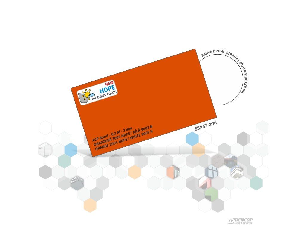 Vzorka ACP Bond 0,3 3mm oranžová2004HDPE/biela9003N